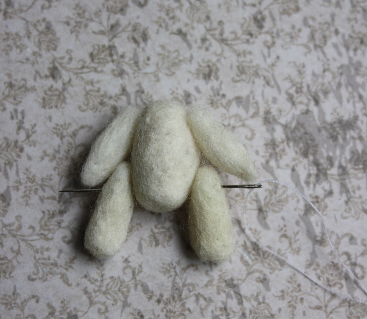 3. Take a piece of sewing thread and needle and sew the hands and legs onto the body.