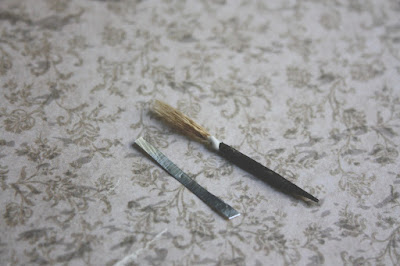 2. Cut the tip from a feather to make the bristles and glue them carefully into the handle.