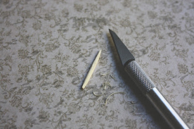 1. Whittle a 2 cm long handle of a paint brush from wooden matchstick.