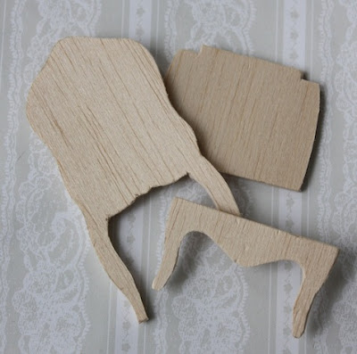 Tämä pikkuinen rokokoo-tyylinen nukkekodin tuoli valmistuu pehmeästä balsapuusta. Istuimen ja selkänojan pehmusteena on nahkapalat. Tuoli maalataan lopuksi akryylimaalilla.