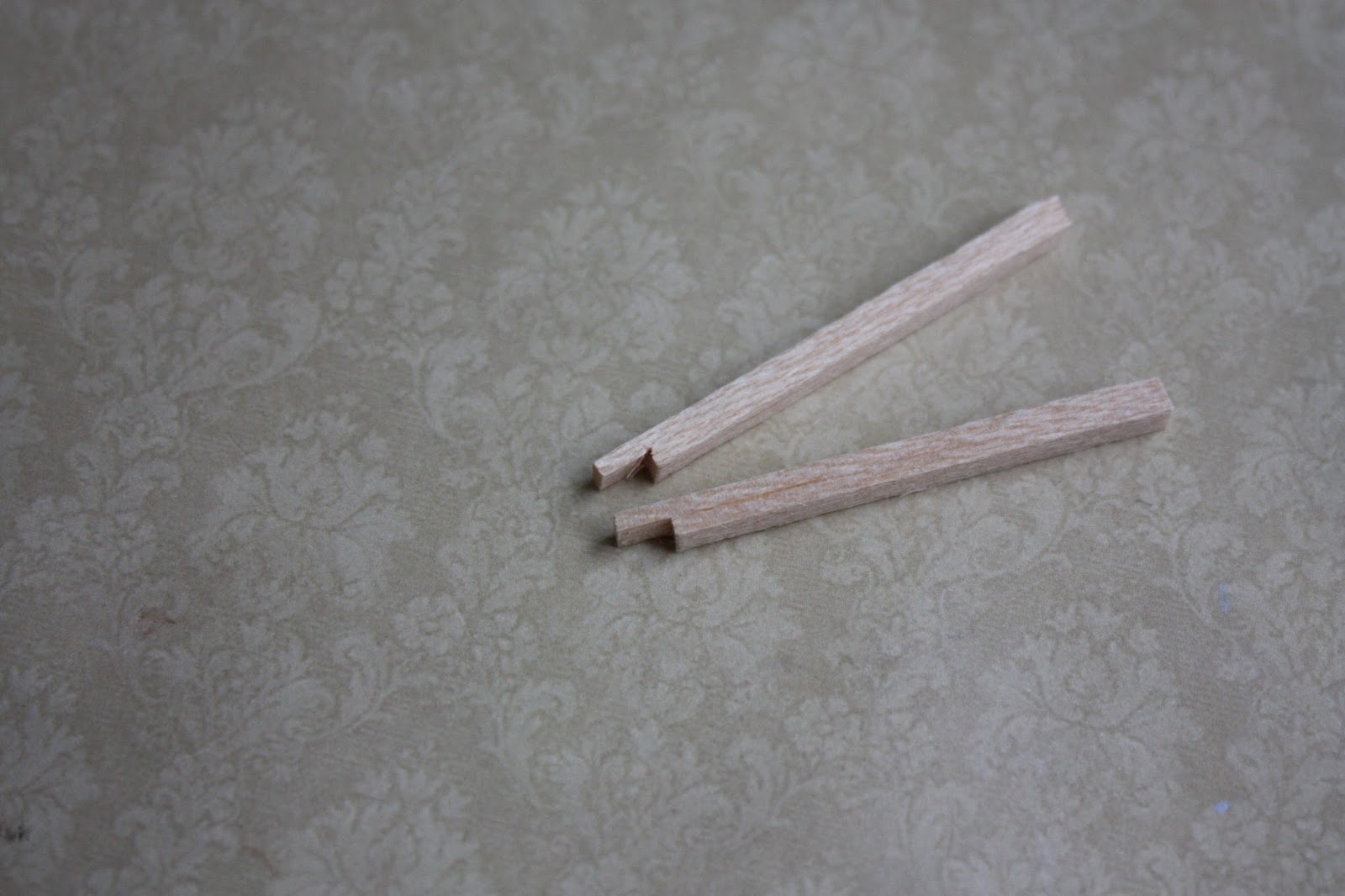 2. Glue three (2,3 cm x 4 mm) pieces onto the sidepieces (3,4 cm 4 mm), let the glue dry.