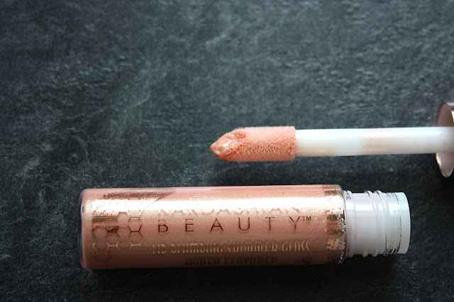 Sitten huulituotteisiin. Kuvassa kaksi ylempää ovat En-Joystickit, jossa puna on kynämäinen ja alaosaa pyöritettäessä tulee esiin pakkauksestaan. Alimmaisena tuote, johon ihastuin eli Lip Plumping Shimmer Gloss sävy Boosted Beige Nude. Upean kiillon antava huulikiilto, joka ei ole lainkaan tahmaisen tuntuinen huulilla.