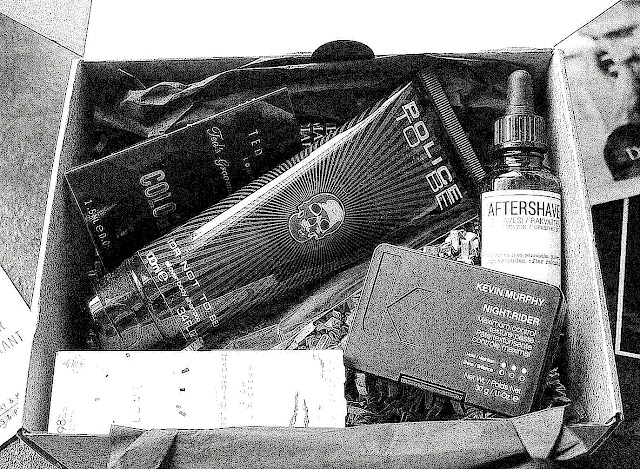 Siinä odottaa mielenkiintoinen pahvilaatikko avaamistaan! Sisällä on erilaisia kosmetiikkatuotteita ja ihan ja kokonaan miesväelle tarkoitettuja. Kiva, kun tällaisia kosmetiikkabokseja on saatavilla ja miehillekin ihan omansa tuotteet pakattuna yhteen. Ja on muuten kiva lahjaideanakin tällainen ylläriboksi!
