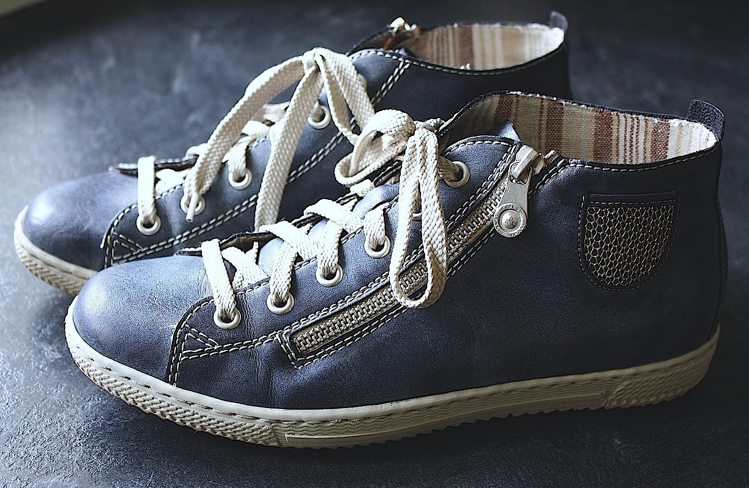 Nauhalliset Heisi -kengät ovat mielestäni niin nätit. Nuo mustat nauhat ovat hyvä lisä, koska niiden avulla kengät saa sitten säädettyä omiin jalkoihin oikein hyvin istuvaksi. Kenkien toisella sivulla on vetoketju, joten kengät saa sitten aina sujautettua jalkaan helposti ja nopeasti. Nämä Heisi -kengät ovat muuten sitten istuvuudeltaan nk. tilava malli, joten jos pähkäilet kahden koon väliä, kuten minä aina - niin suosittelen valitsemaan sen pienemmän koon.