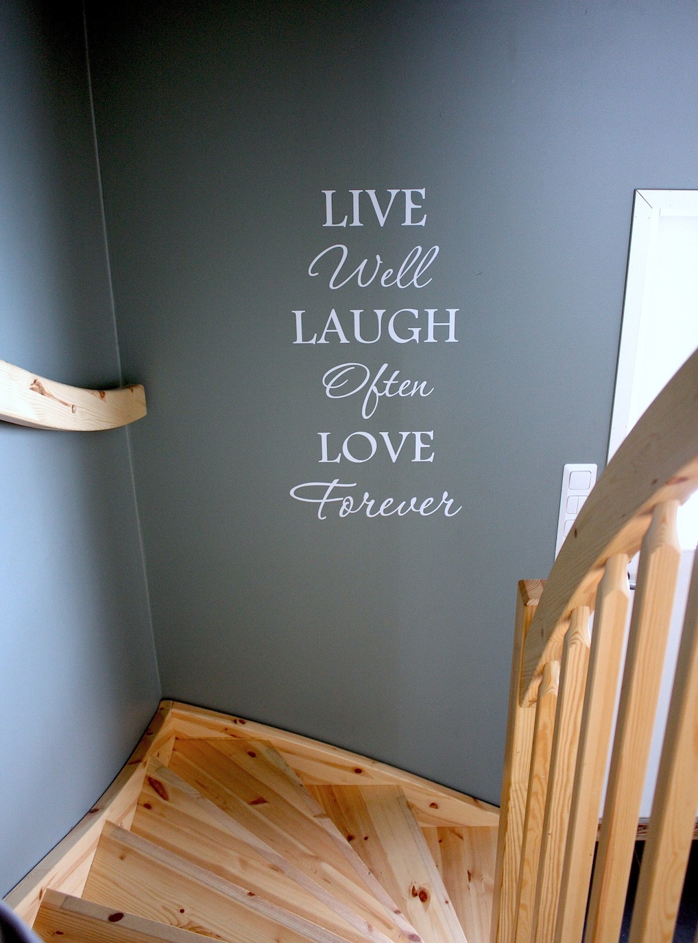 No niin... siinä se ihanuus nyt on. Lintu, joka lensi tarran muodossa meidän kotimme kodinhoitohuoneeseen. Oli ensin vähän miettimistä, mihin tämän tarran sijoitan. Meillä kun useat seinät ovat lähes samaa sävyä kuin itse tarra, niin pohjan on hyvä ollakin tässä tapauksessa valkea, ja kyllä tämä oikein kivasti mielestäni sopii tuohon oven yläpuolelle.